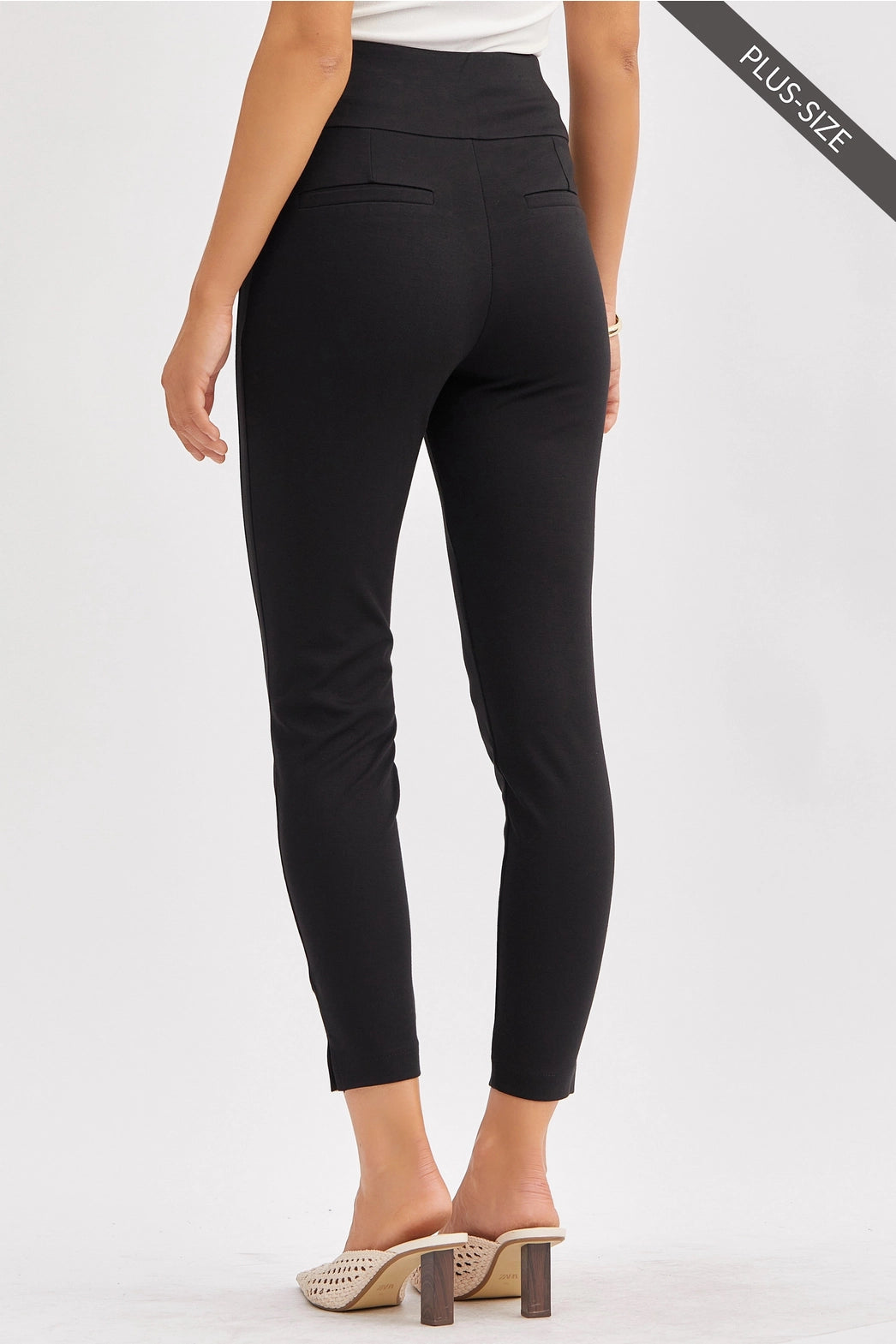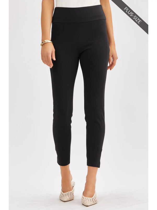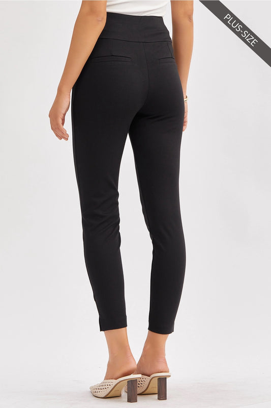 Introducing our Black Magic Ankle Crop Skinny Pants! Designed with tummy control technology and a 4-way stretch, these high waisted pants provide a structured and slimming look for all-day comfort. Made with a special double-knit fabric, they're perfect for everyday wear, work, and special occasions. A pull-on design offers convenience while the tuxedo stripe and faux welt pockets add a touch of sophistication.