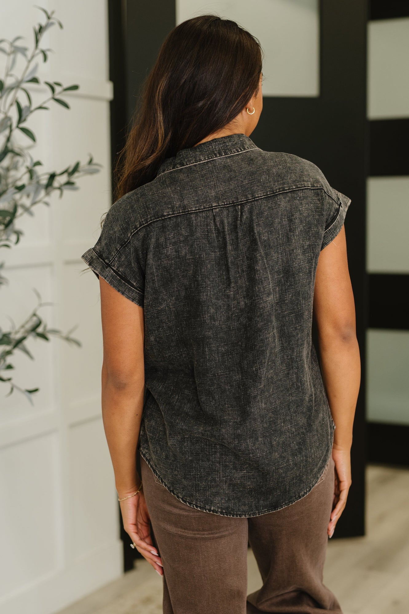 Cloud Nine to Five Button Down Blouse in Ash Black