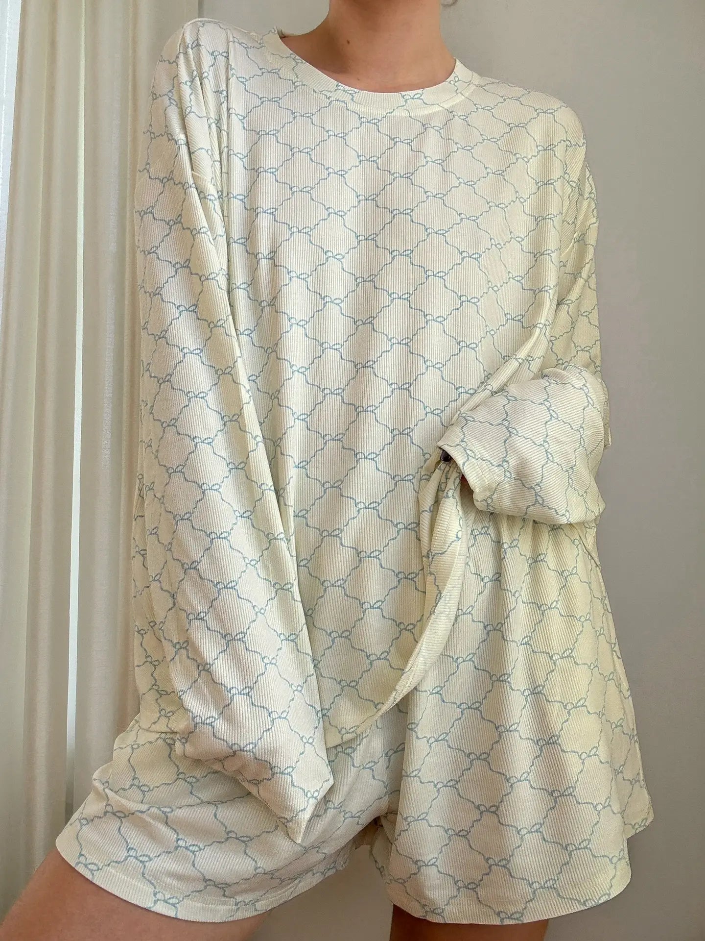 Around here, we like to get in our pajamas as quick as possible! These will rise to the top of your favorites list REAL quick. So cute, pale yellow and baby blue, and so cozy! Long sleeve top and shorts included in set.