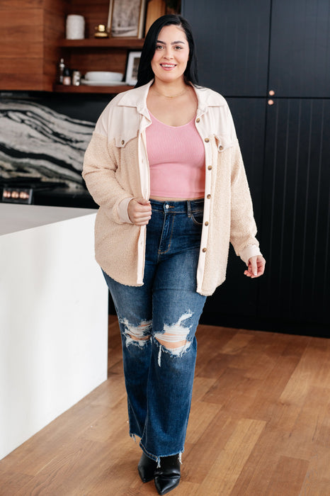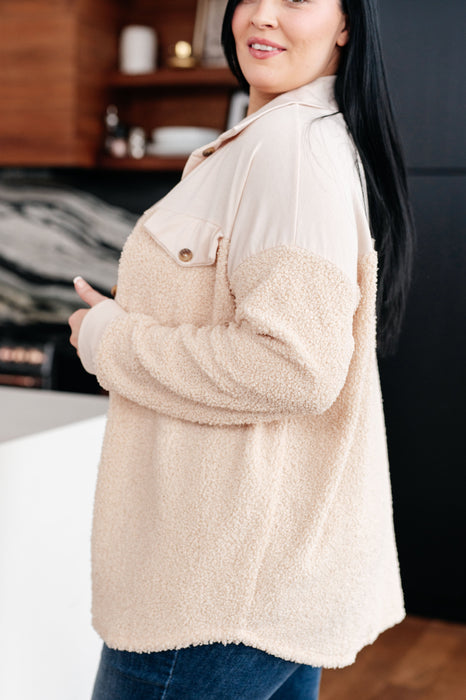 Wrap yourself in endless potential with our Endless Potential Sherpa Shacket! Made from cozy sherpa fleece and jersey knit, this shacket features a collared neckline and adorable faux pockets. Get ready to rock your look with this versatile and stylish piece!