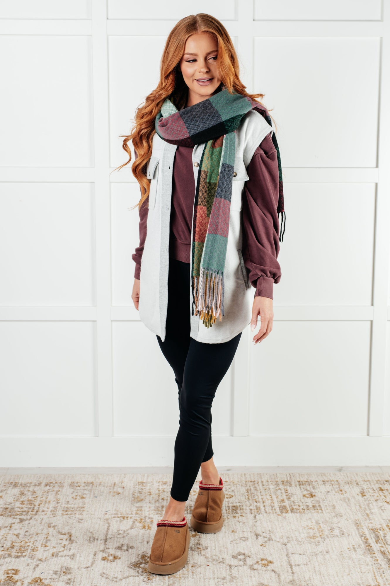 Keep Me Cozy Checkered Fringe Scarf in Berry