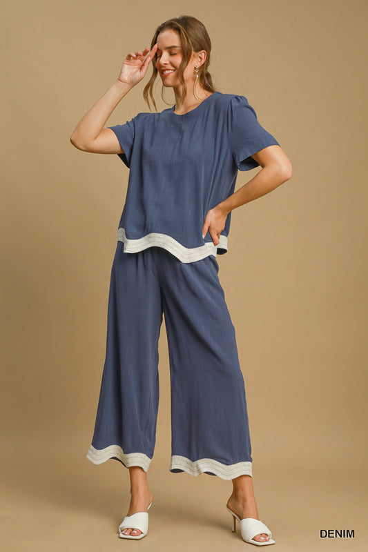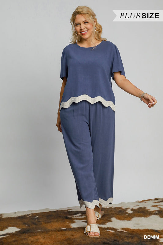 Cute and dainty were the first thoughts I had when this came in, so fun! Another versatile piece to have in your closet. We recommend pairing it with the matching pants or a cute pair of tattered denim and layer on those Navajo pearls!