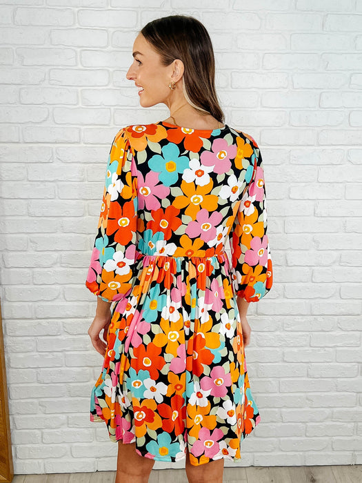 Get ready to make a statement in our Little Bold V-Neck Knit Dress! Made with buttery soft knit and featuring a playful bow detail, this dress is both comfortable and eye-catching. The V-neckline and gathered sleeves add a touch of elegance, while the elastic waistline ensures a flattering fit. Don't miss out on this bold and beautiful floral print dress!