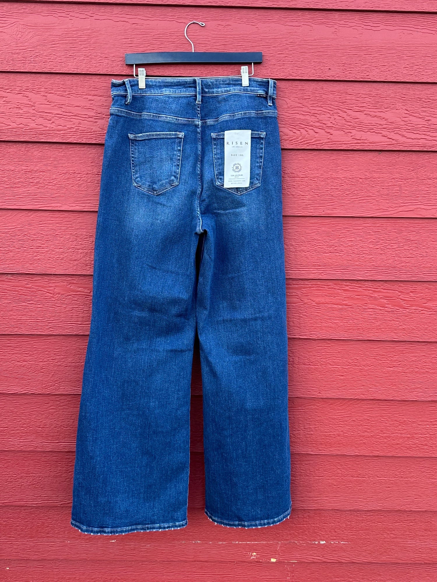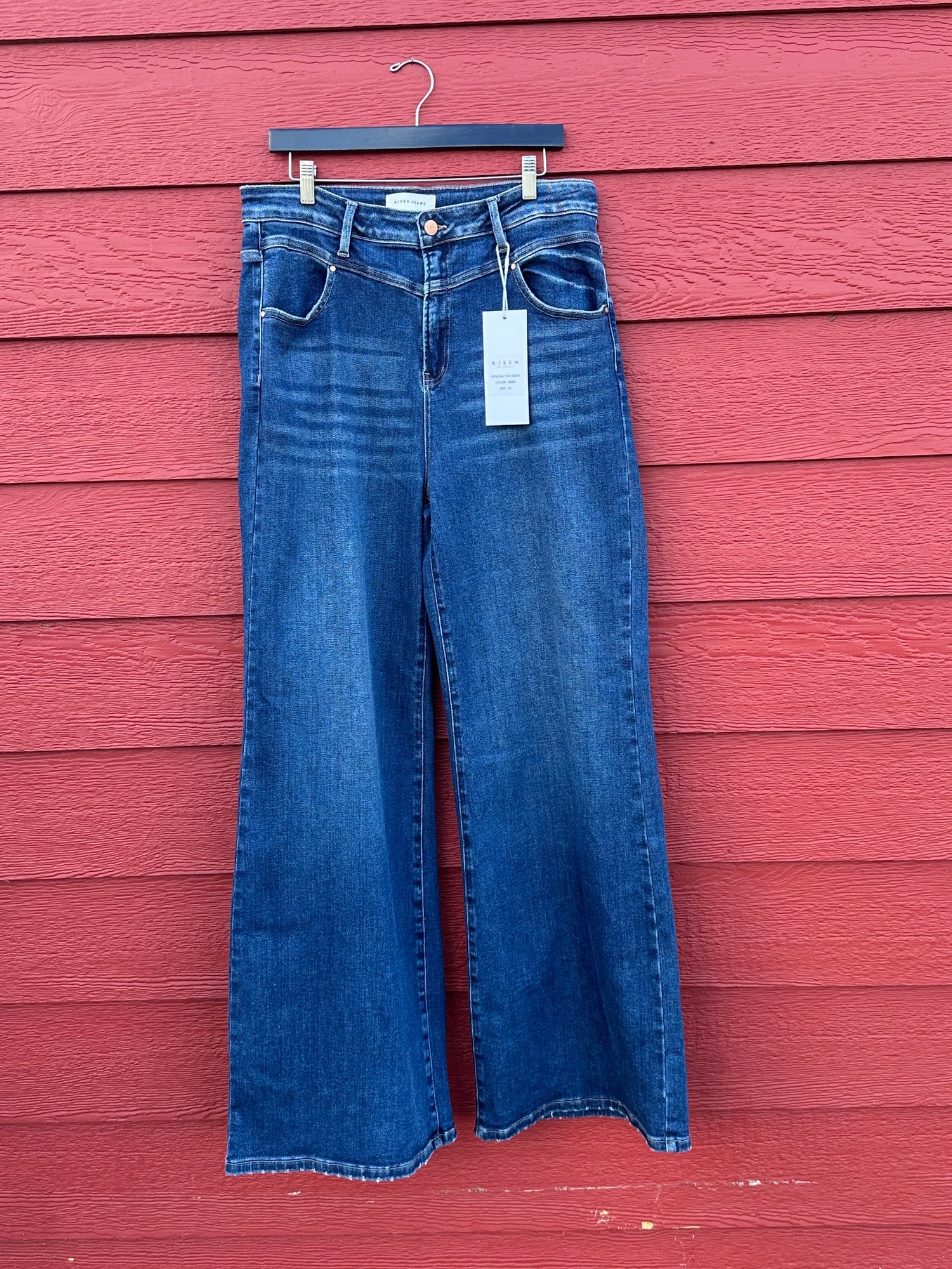 • Risen High Rise Wide Front Yoke Detailed Dark Wash Jeans