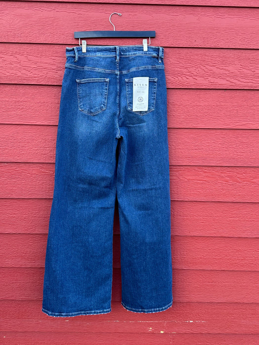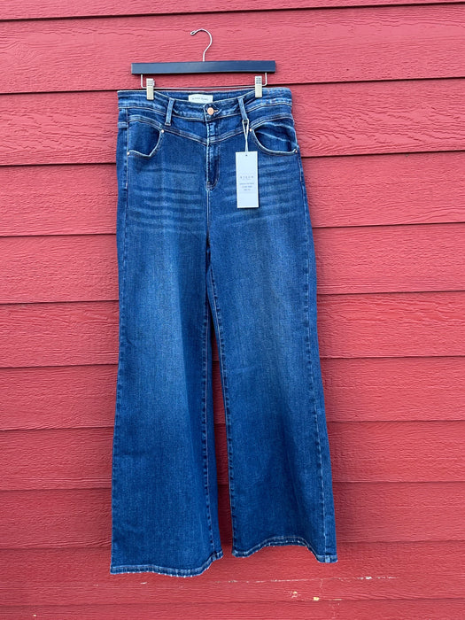 Risen High Rise Wide Front Yoke Detailed Dark Wash Jeans